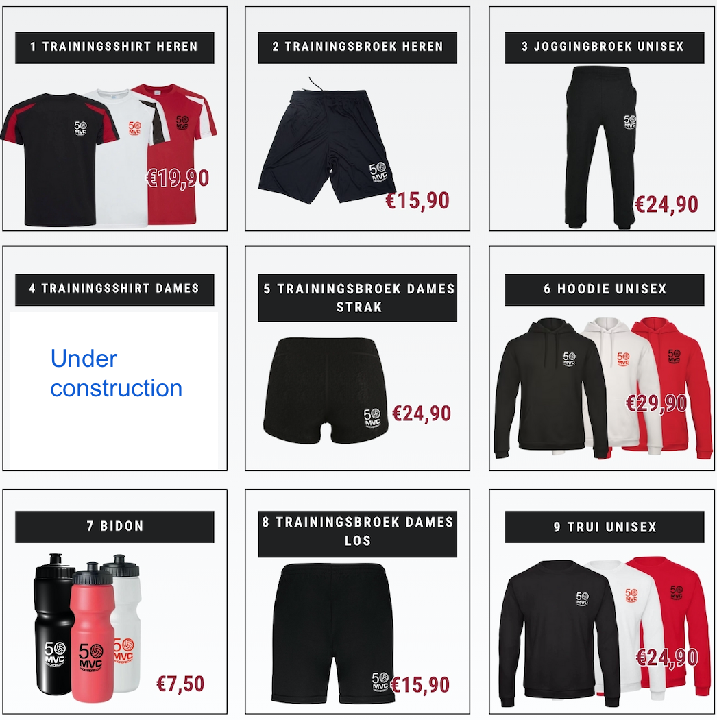 Onze eigen kledinglijn met verschillende maten per item.